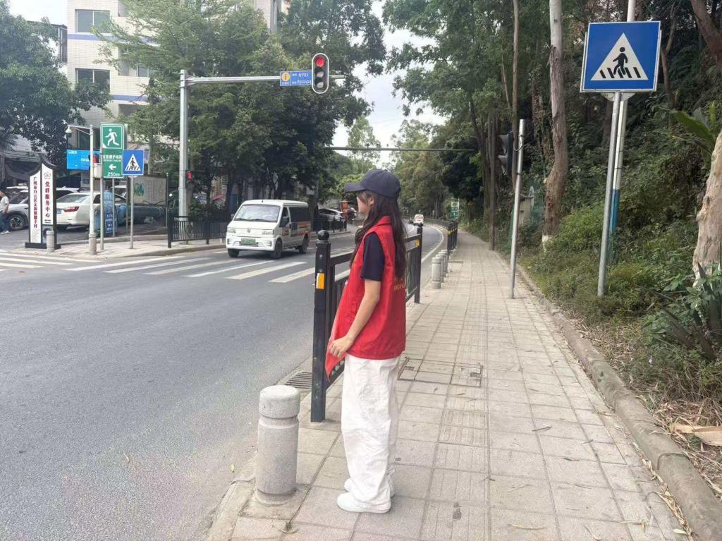 活动中,志愿者们身着鲜红的志愿服装,手持文明劝导标语牌,在交通高峰时段驻守于人流车流密集的路口。他们耐心引导行人、非机动车遵守红绿灯信号,对闯红灯、不走斑马线等行为进行礼貌劝阻。与此同时,他们还重点关注电动自行车、摩托车骑乘人员的安全,主动上前提醒骑手佩戴安全头盔,并向汽车驾乘人员强调系好安全带的重要性,落实“一盔一带”,切实保障人身安全。此外,志愿者们还积极提供出行协助,比如帮扶老人儿童安全过马路、为问路行人提供指引,还整理路口停放不当的车辆,以保障道路通畅与市容整洁。通过这次活动,同学们真切体会到交通秩序维护者的辛苦与责任,每一次成功的劝阻都让他们感受到沟通和理解的力量。有志愿者表示,亲身参与劝导后,对交通规则的理解不再局限于书本条文,而是升华为对生命的敬畏。