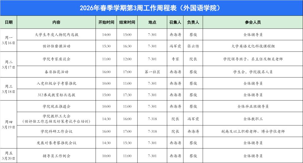 关于2026年春季学期第3周工作周程表