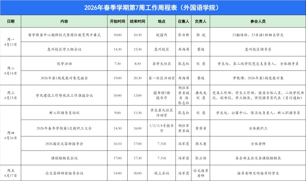 关于2026年春季学期第7周工作周程表