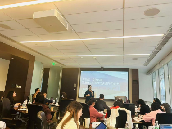 第二场讲座由语言文化中心学术英语高级讲师张瑜芳主讲,聚焦“AI赋能、文化破冰:激发理工科学生的外语学习动力”。张老师从一线教学痛点出发,直指理工科学生常因“外语实用性弱”“学习目标模糊”而缺乏动力的普遍现象。她结合昆山杜克大学的实践经验,提出“工具重构”与“动机转化”两大策略:一方面,将语言学习从“应试任务”转变为“学术探索工具”,例如通过科技文献阅读、国际会议模拟等场景,让学生在真实需求中主动使用外语;另一方面,推动AI工具从“翻译助手”升级为“文化探索向导”,利用AI分析不同文化背景下的学术表达习惯,帮助学生在跨文化交流中建立文化敏感度。张老师强调:“当学生发现外语能帮助他们链接全球资源、解决专业问题时,‘要我做’自然会转变为‘我要做’。”
