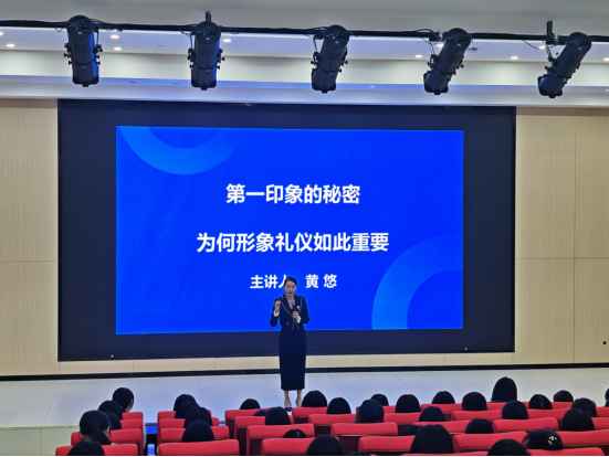 讲座伊始,主持人关俊文老师代表学院对主讲嘉宾黄悠老师的莅临表示热烈欢迎,并简要介绍了本次讲座的举办初衷——旨在通过系统的礼仪知识普及,助力学子塑造良好个人形象,提升综合素养。随后,黄老师以“第一形象的秘密:为何礼仪形象如此重要”为主题展开分享,迅速吸引了全场同学的注意力。她结合职场与社交场景中的真实案例,细致地阐释了“黄金7秒”第一印象的重要性,强调得体的礼仪形象是赢得他人信赖、把握发展机遇的关键前提。